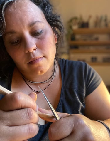 Seit frühen Kindertagen treibt mich das Bedürfnis nach künstlerischen Ausdruck an. Als junge Erwachsene wollte ich dann ein "richtiges" Handwerk lernen und bin in der Metallrestaurierung gelandet. Dort konnte ich am historischen Objekt alte Handwerkstechniken erlernen. Vom Kupfertreiben, Vergolden, über die Konservierung von Bronzestatuen bis zum gelegentlichen Schmieden am Feuer.