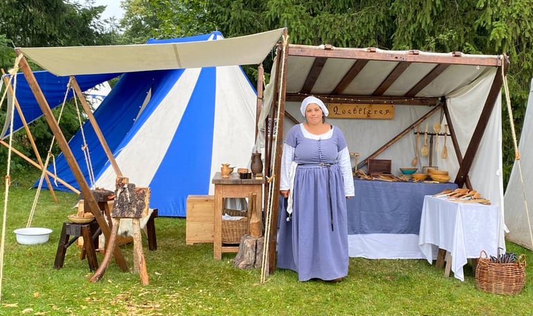 Auf historischen Märkten, Reenactment-Veranstaltungen oder Themenfesten zeige ich mein Handwerk direkt vor Ort